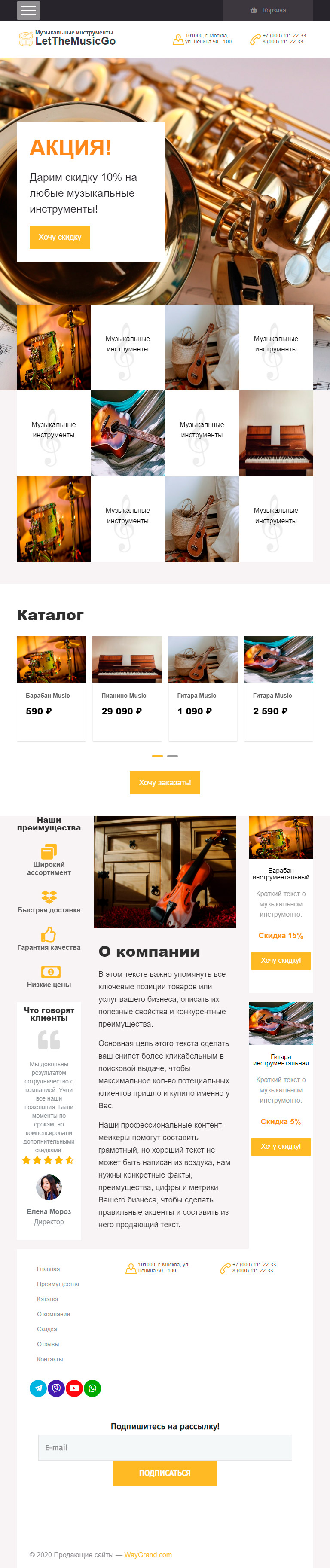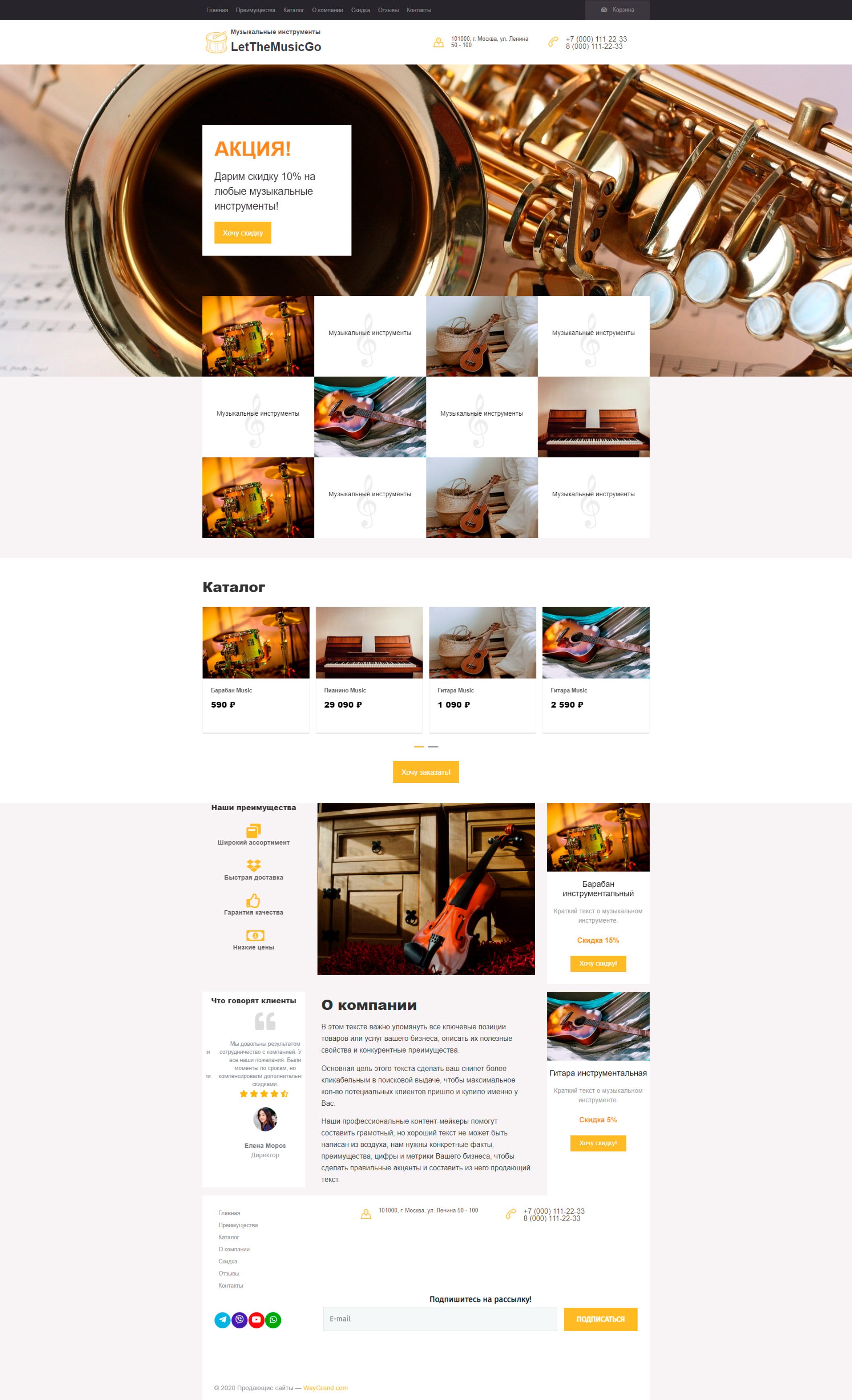 Закажите готовый продающий сайт лендинг #0710201 в Стерлитамаке за 1-3 дня «под ключ»: свёрстан, отрисован и готов к рекламе. Тематика шаблона «Музыкальные инструменты».