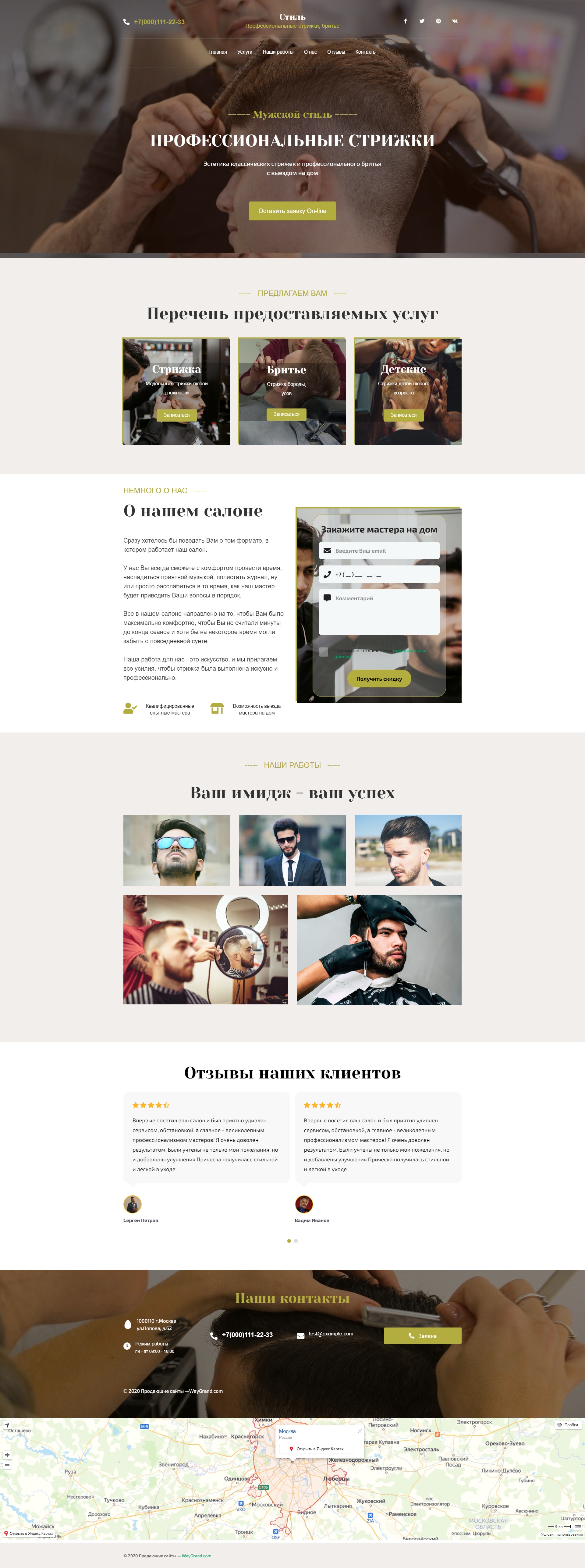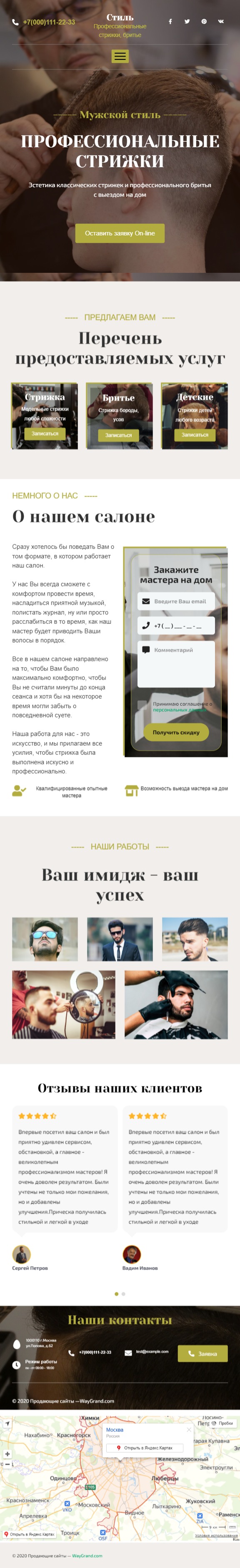 Закажите готовый продающий сайт лендинг #1109201 в Стерлитамаке за 1-3 дня «под ключ»: свёрстан, отрисован и готов к рекламе. Тематика шаблона «Парикмахерская (барбершоп)».