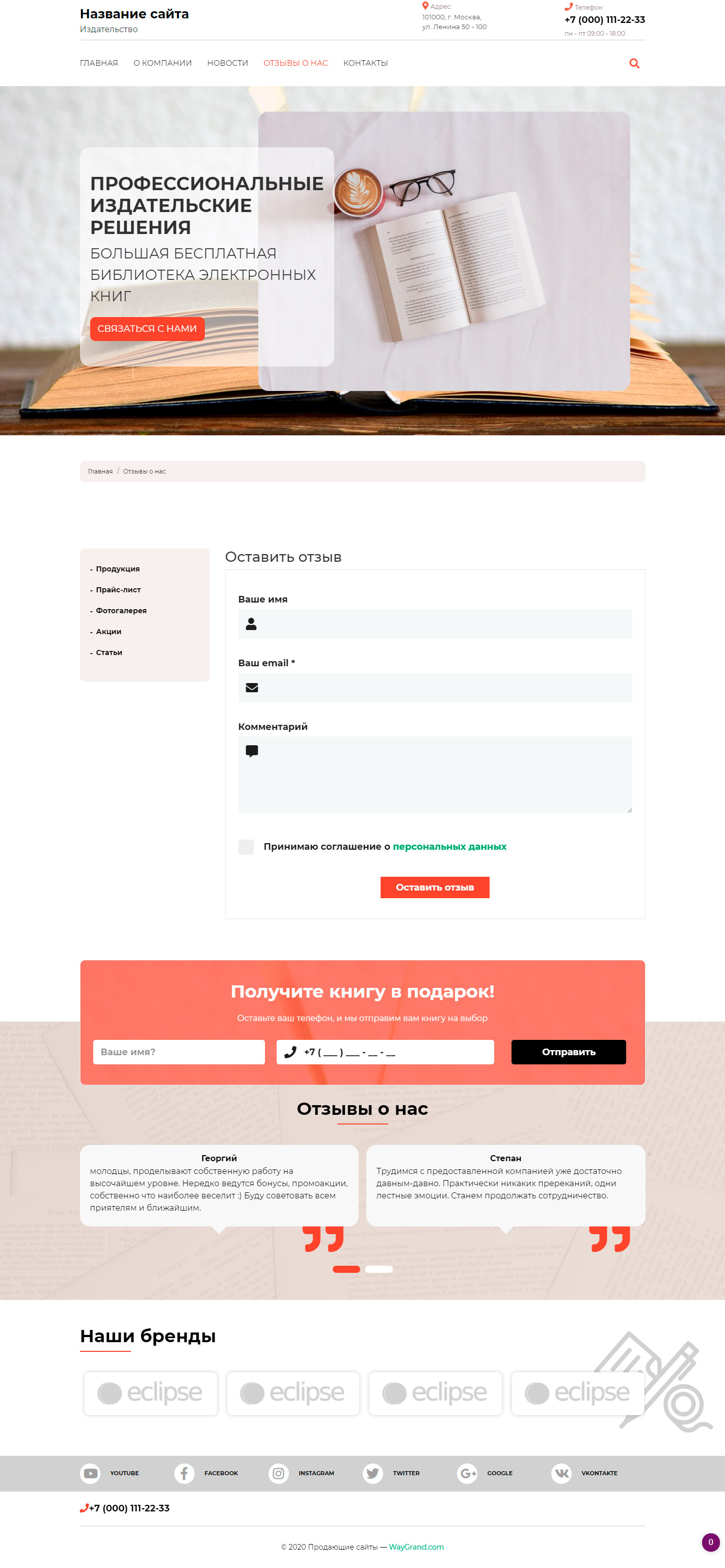 - Страница "Отзывы о нас"