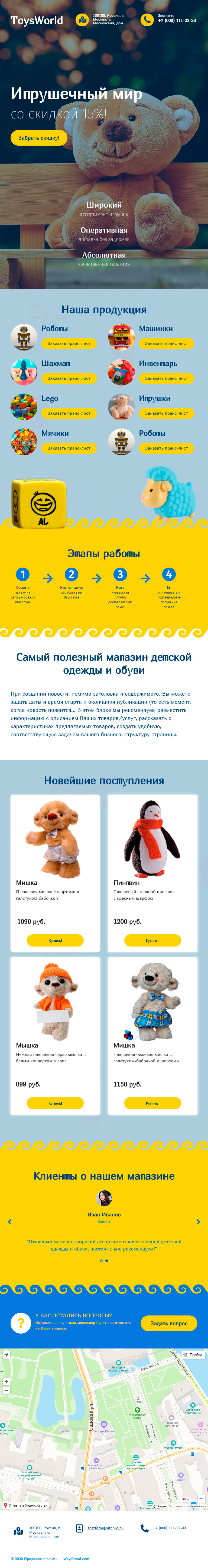 Закажите готовый продающий сайт лендинг #1509201 в Стерлитамаке за 1-3 дня «под ключ»: свёрстан, отрисован и готов к рекламе. Тематика шаблона «Игрушечный мир».
