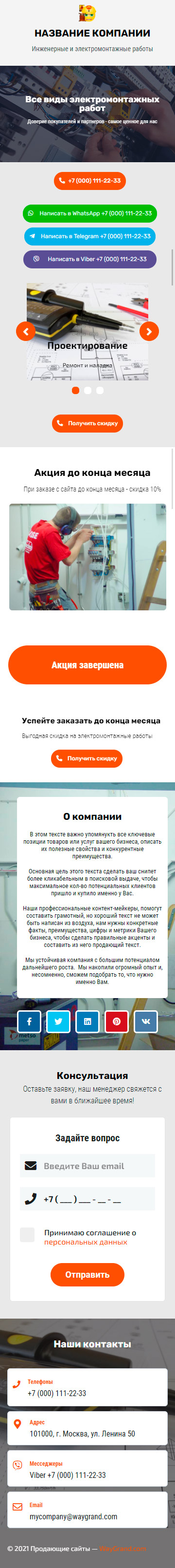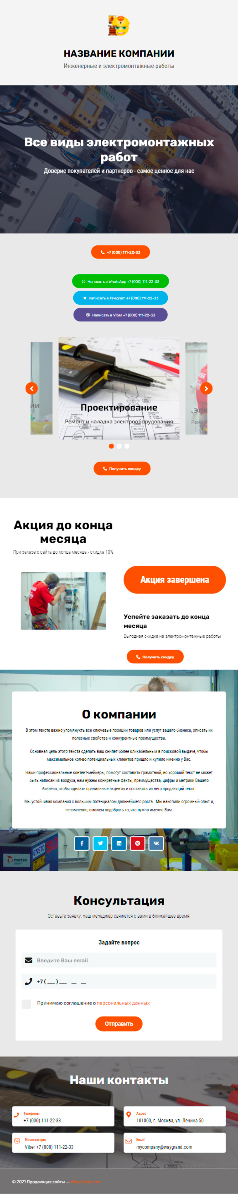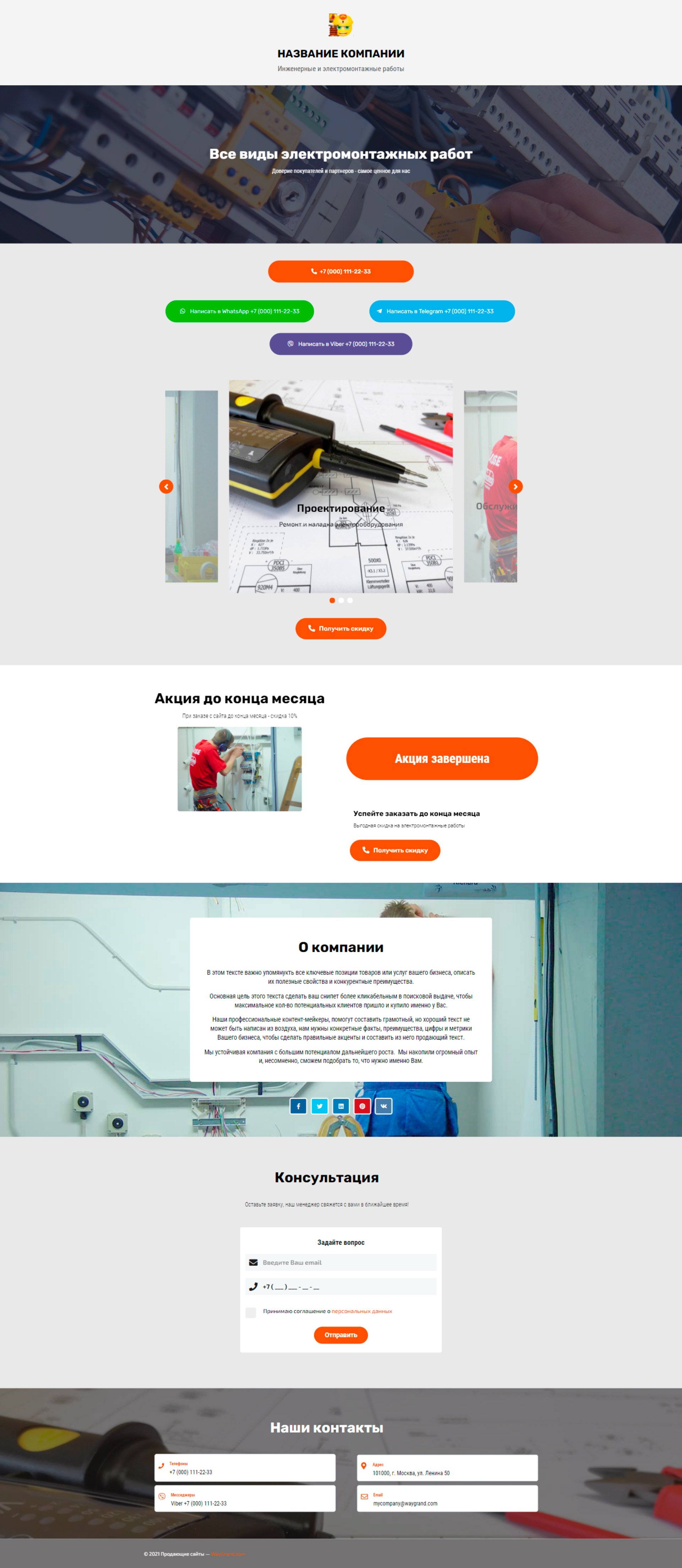 Закажите готовый продающий сайт визитка #2189101 в Стерлитамаке за 5-7 дня «под ключ»: свёрстан, отрисован и готов к рекламе. Тематика шаблона «Инженерные и электромонтажные работы».