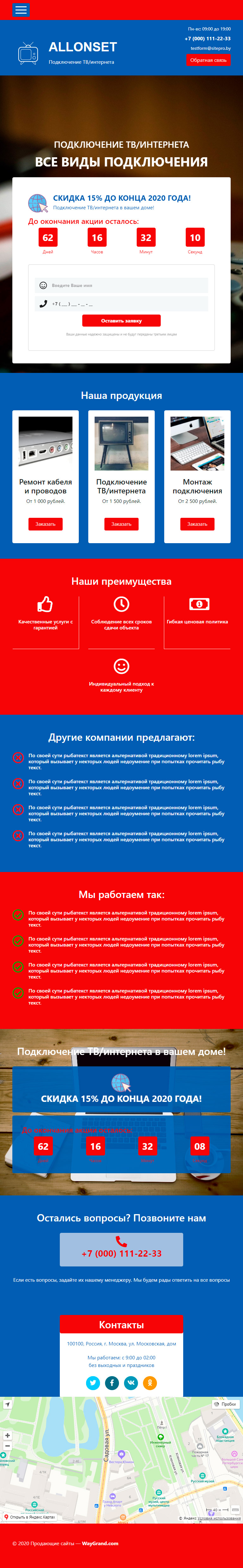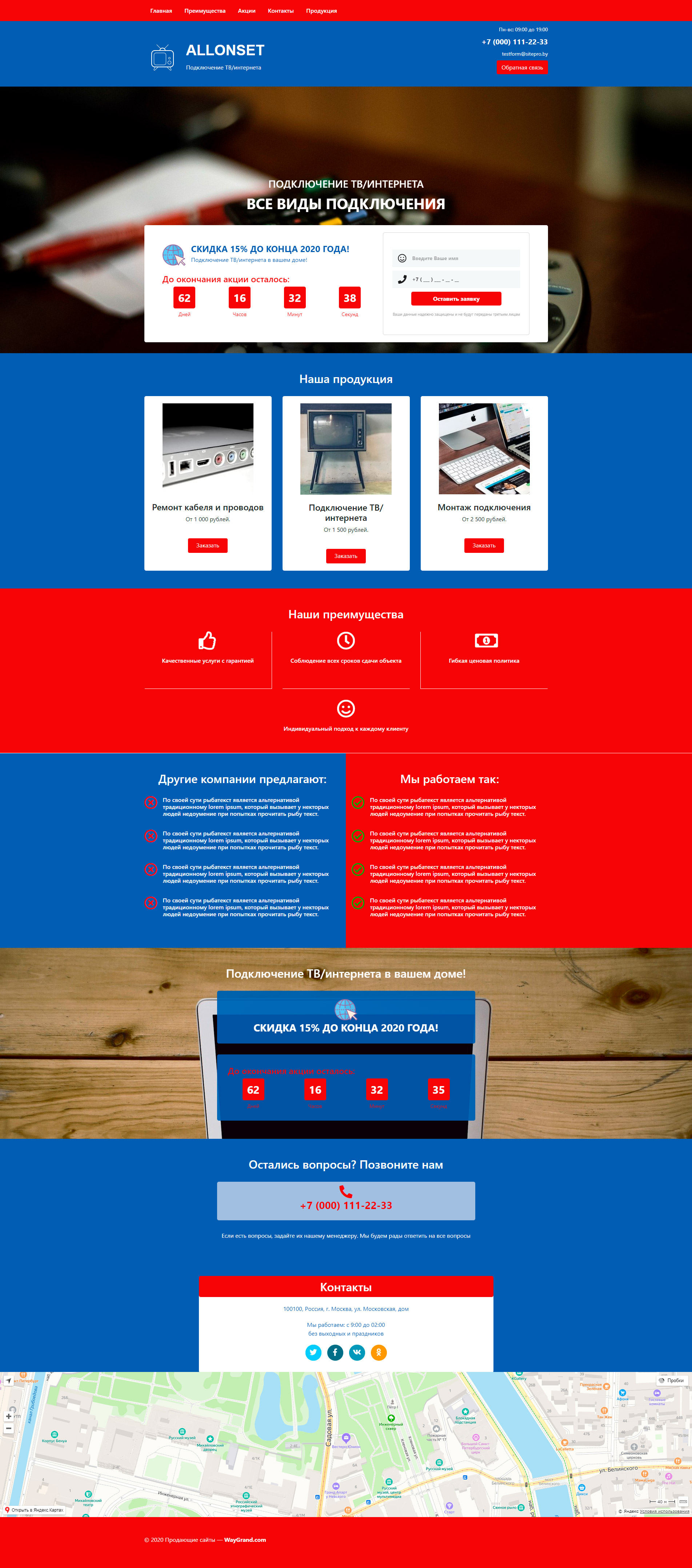 Закажите готовый продающий сайт лендинг #0718201 в Стерлитамаке за 1-3 дня «под ключ»: свёрстан, отрисован и готов к рекламе. Тематика шаблона «Подключение ТВ/интернета».