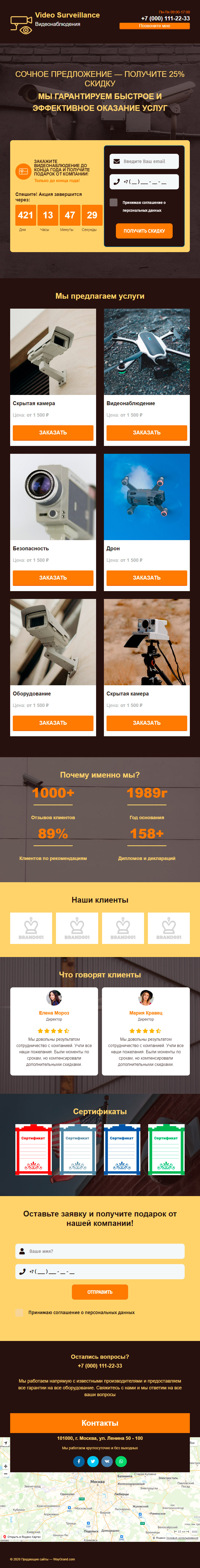Закажите готовый продающий сайт лендинг #1609203 в Стерлитамаке за 1-3 дня «под ключ»: свёрстан, отрисован и готов к рекламе. Тематика шаблона «Видеонаблюдение».