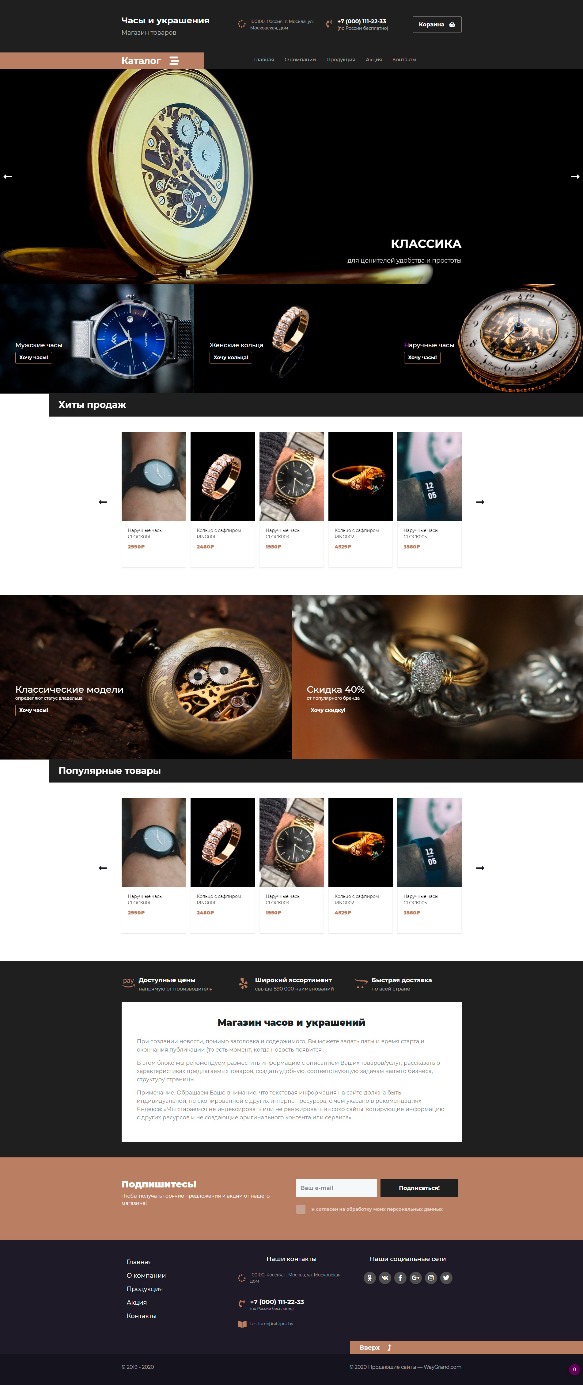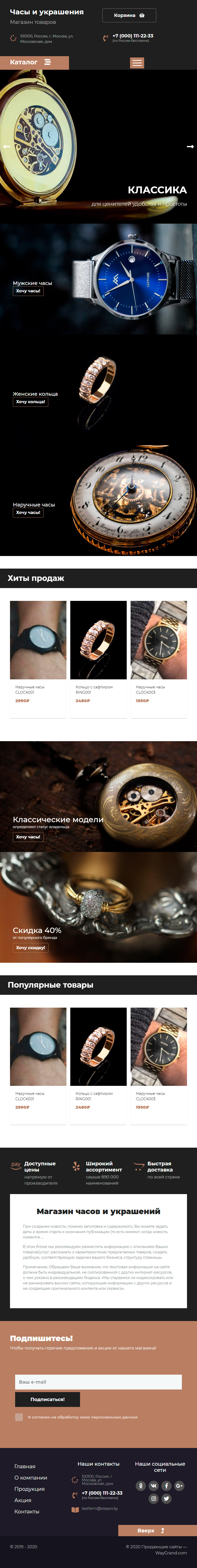 Закажите готовый продающий сайт лендинг #2437201 в Стерлитамаке за 1-3 дня «под ключ»: свёрстан, отрисован и готов к рекламе. Тематика шаблона «Часы и украшения».