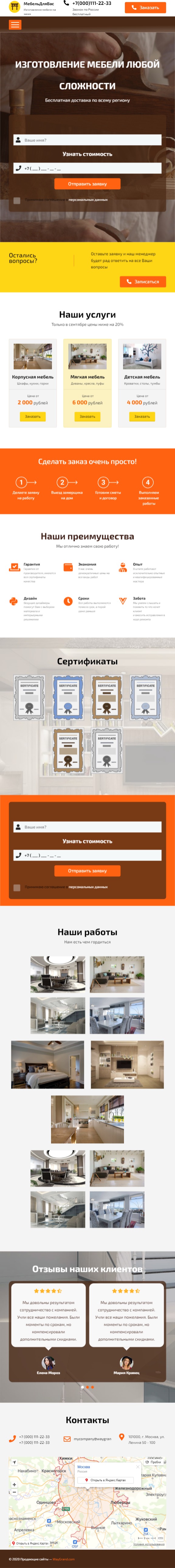Закажите готовый продающий сайт лендинг #0903201 в Стерлитамаке за 1-3 дня «под ключ»: свёрстан, отрисован и готов к рекламе. Тематика шаблона «Изготовление мебели».