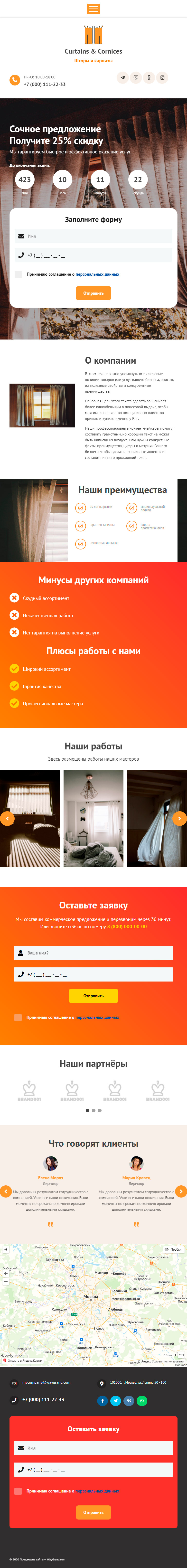 Закажите готовый продающий сайт лендинг #2209201 в Стерлитамаке за 1-3 дня «под ключ»: свёрстан, отрисован и готов к рекламе. Тематика шаблона «Карнизы и шторы».