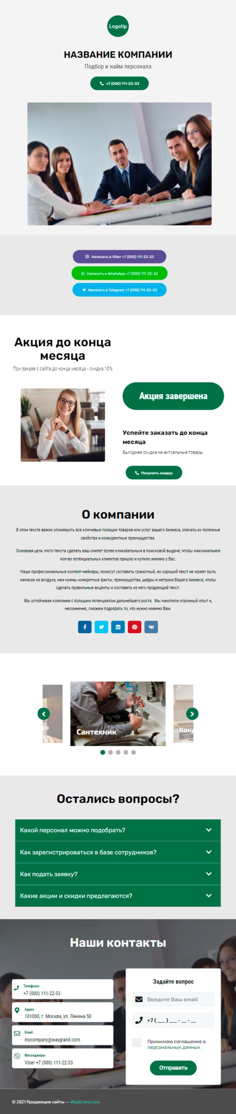 Закажите готовый продающий сайт визитка #1415101 в Стерлитамаке за 5-7 дня «под ключ»: свёрстан, отрисован и готов к рекламе. Тематика шаблона «Подбор и найм персонала».