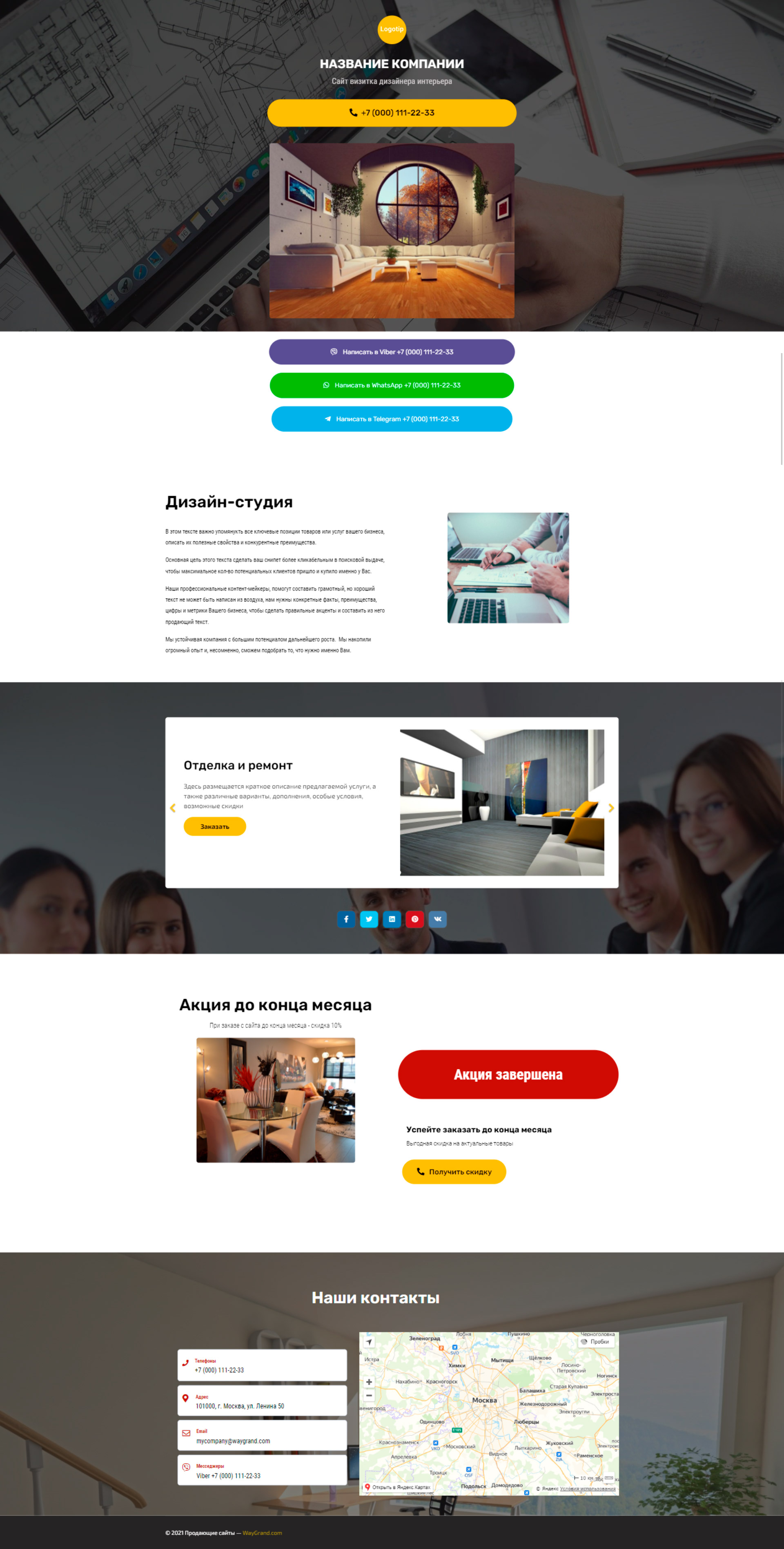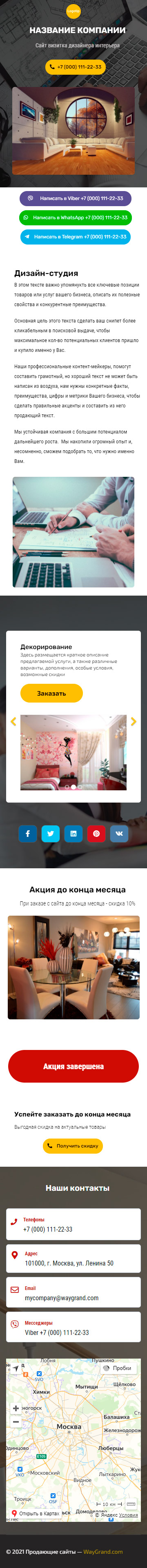 Закажите готовый продающий сайт визитка #2124101 в Стерлитамаке за 5-7 дня «под ключ»: свёрстан, отрисован и готов к рекламе. Тематика шаблона «Дизайн интерьеров».