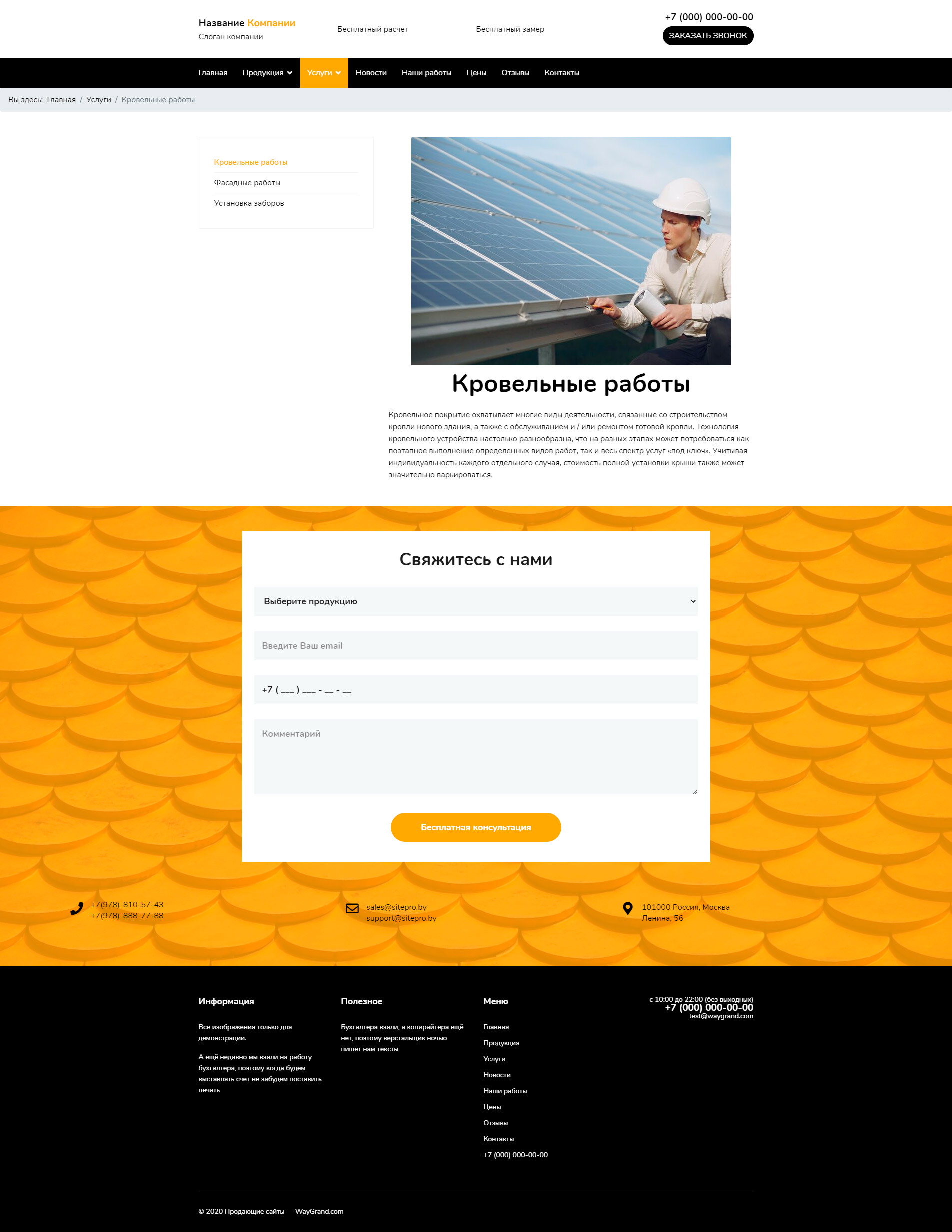 Закажите готовый продающий сайт визитка #2132301 в Стерлитамаке за 5-7 дня «под ключ»: свёрстан, отрисован и готов к рекламе. Тематика шаблона «Заборы, кровля, фасады».