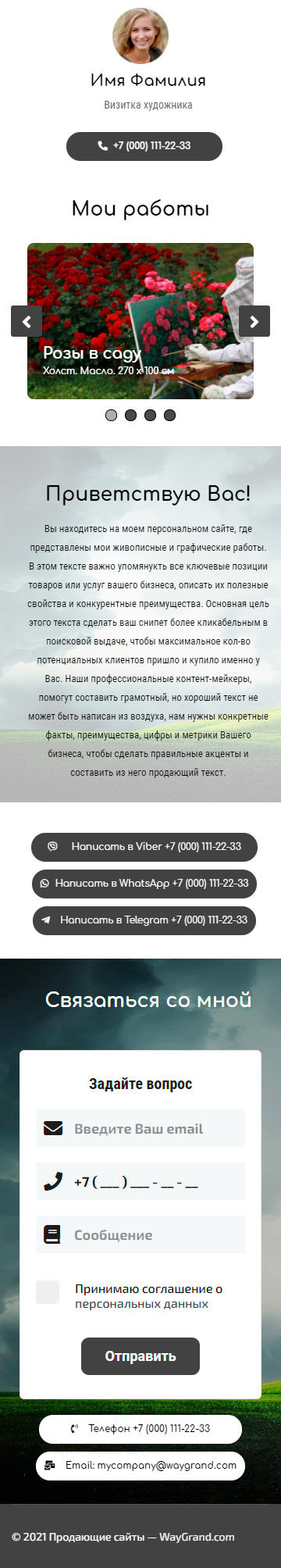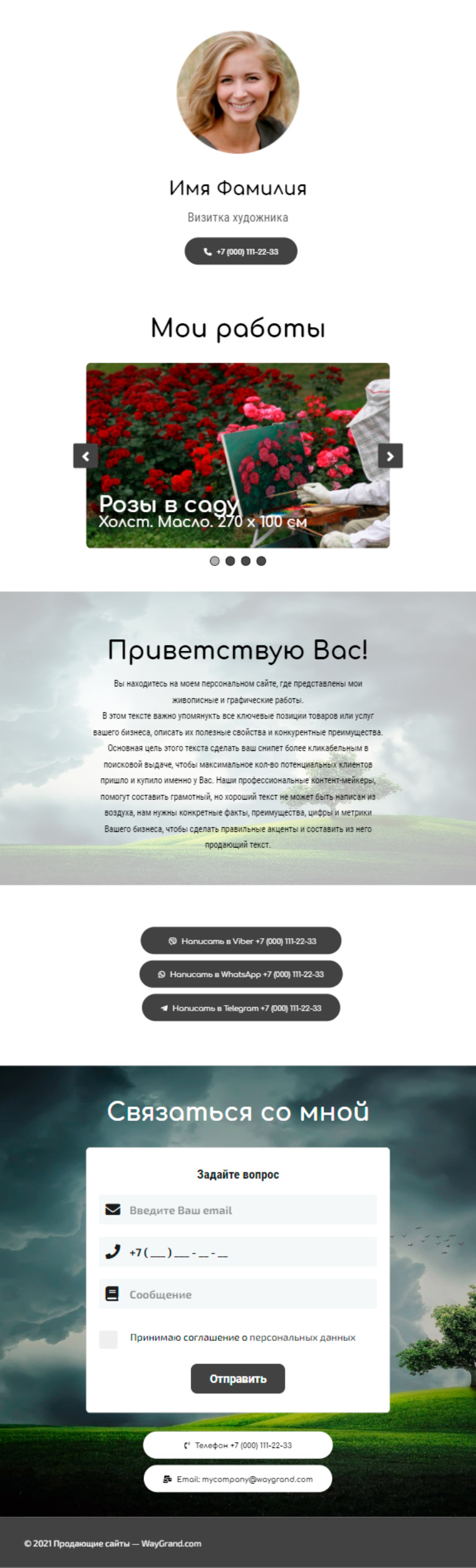 Закажите готовый продающий сайт визитка #0826101 в Стерлитамаке за 5-7 дня «под ключ»: свёрстан, отрисован и готов к рекламе. Тематика шаблона «Визитка художника».