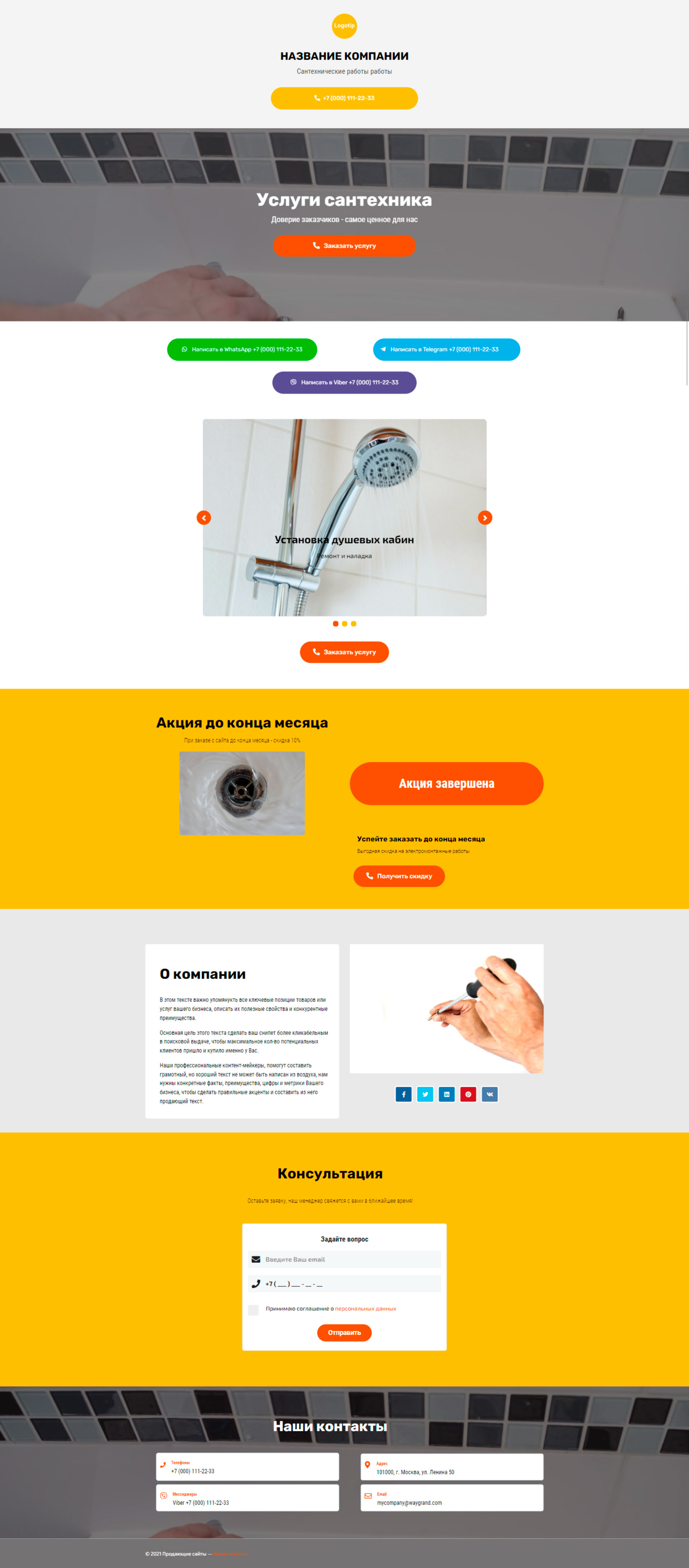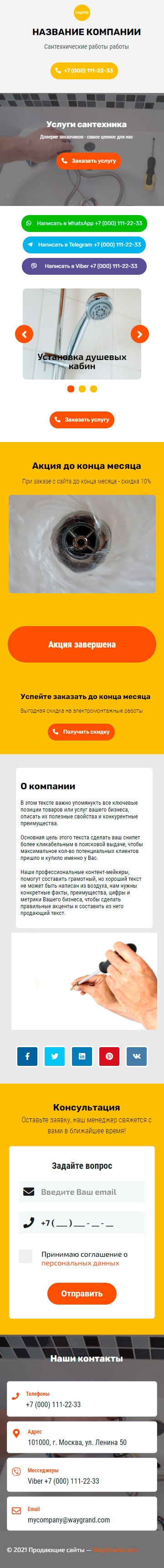 Закажите готовый продающий сайт визитка #2154101 в Стерлитамаке за 5-7 дня «под ключ»: свёрстан, отрисован и готов к рекламе. Тематика шаблона «Сантехнические работы».