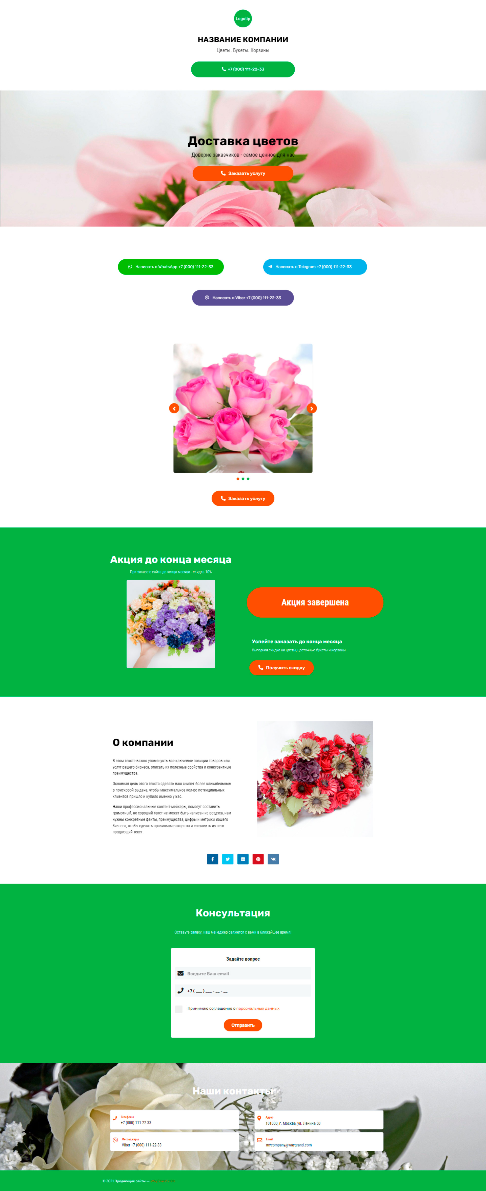 Закажите готовый продающий сайт визитка #2404101 в Стерлитамаке за 5-7 дня «под ключ»: свёрстан, отрисован и готов к рекламе. Тематика шаблона «Доставка цветов».