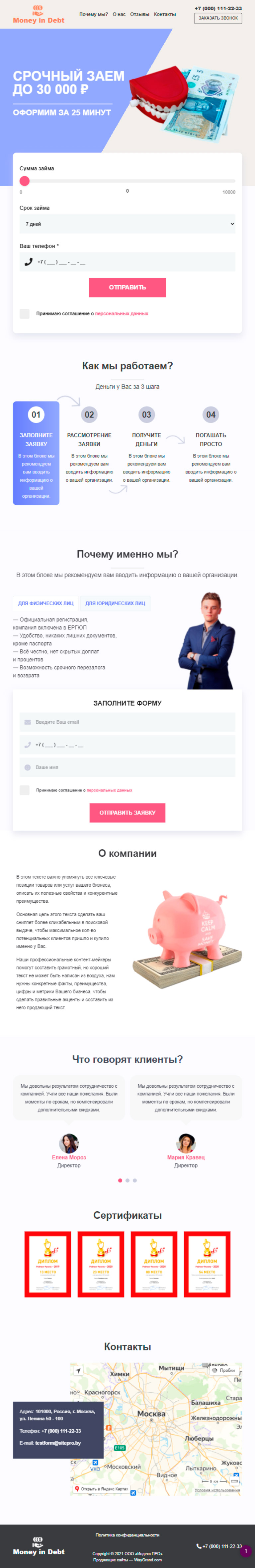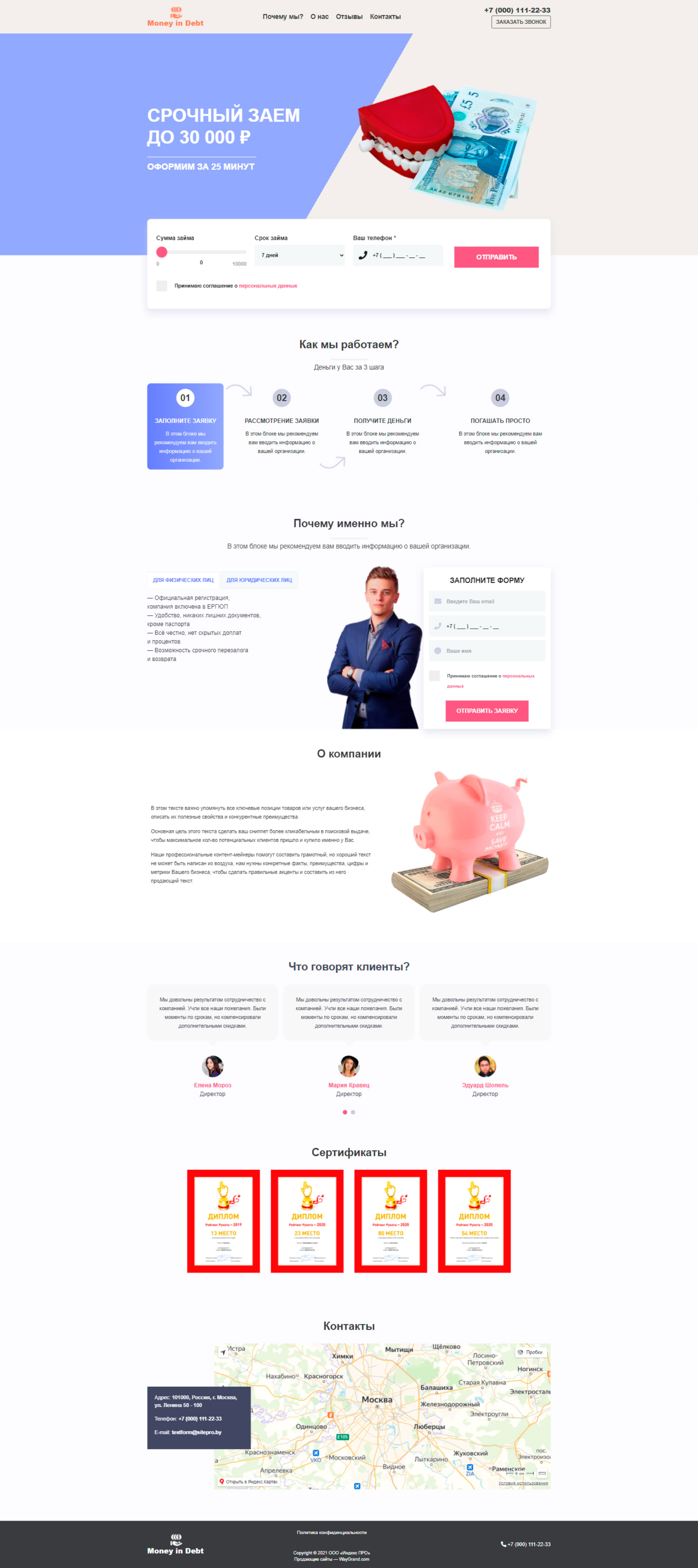 Закажите готовый продающий сайт лендинг #2825202 в Стерлитамаке за 1-3 дня «под ключ»: свёрстан, отрисован и готов к рекламе. Тематика шаблона «Деньги в долг».