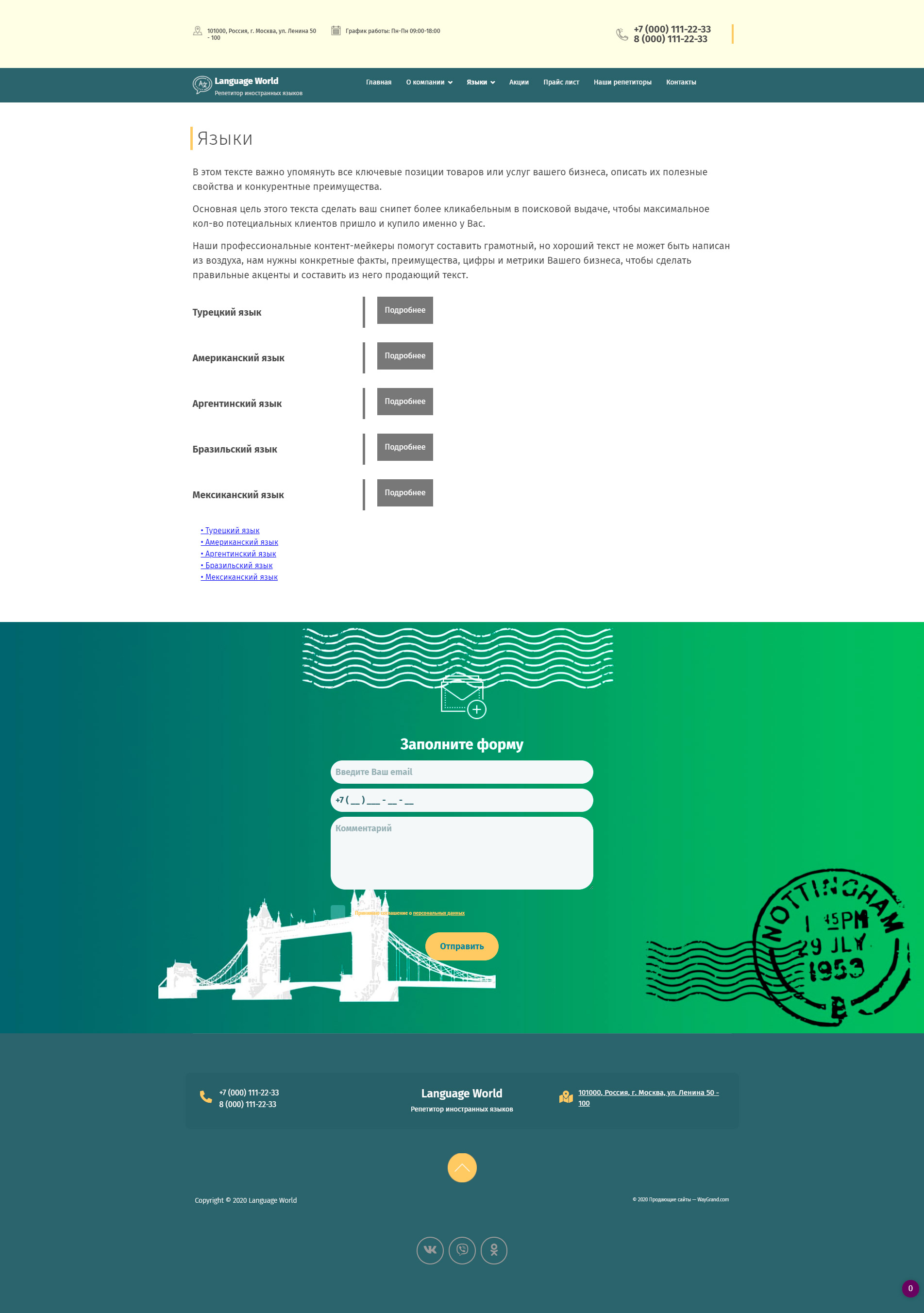 Закажите готовый продающий сайт визитка #1448302 в Стерлитамаке за 5-7 дня «под ключ»: свёрстан, отрисован и готов к рекламе. Тематика шаблона «Репетитор иностранных языков».