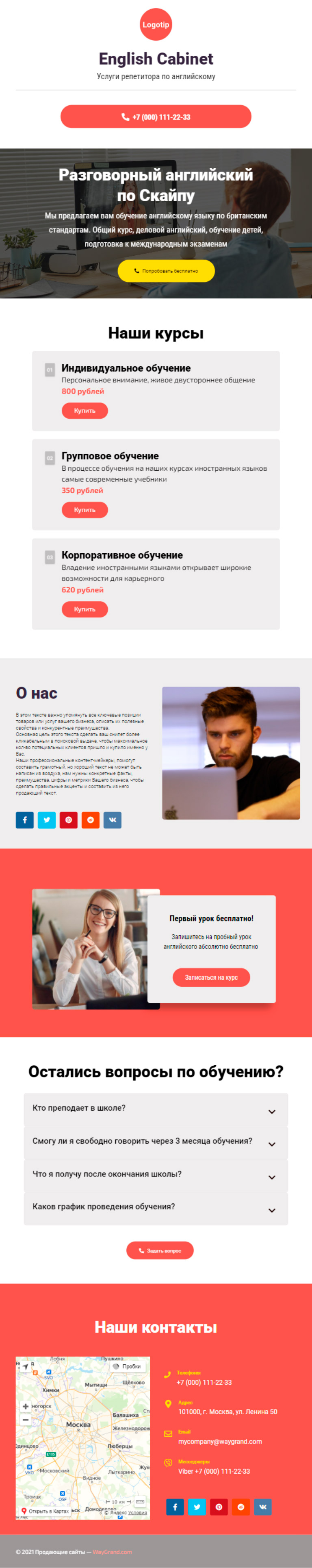 Закажите готовый продающий сайт визитка #1463101 в Стерлитамаке за 5-7 дня «под ключ»: свёрстан, отрисован и готов к рекламе. Тематика шаблона «Услуги репетитора по английскому».
