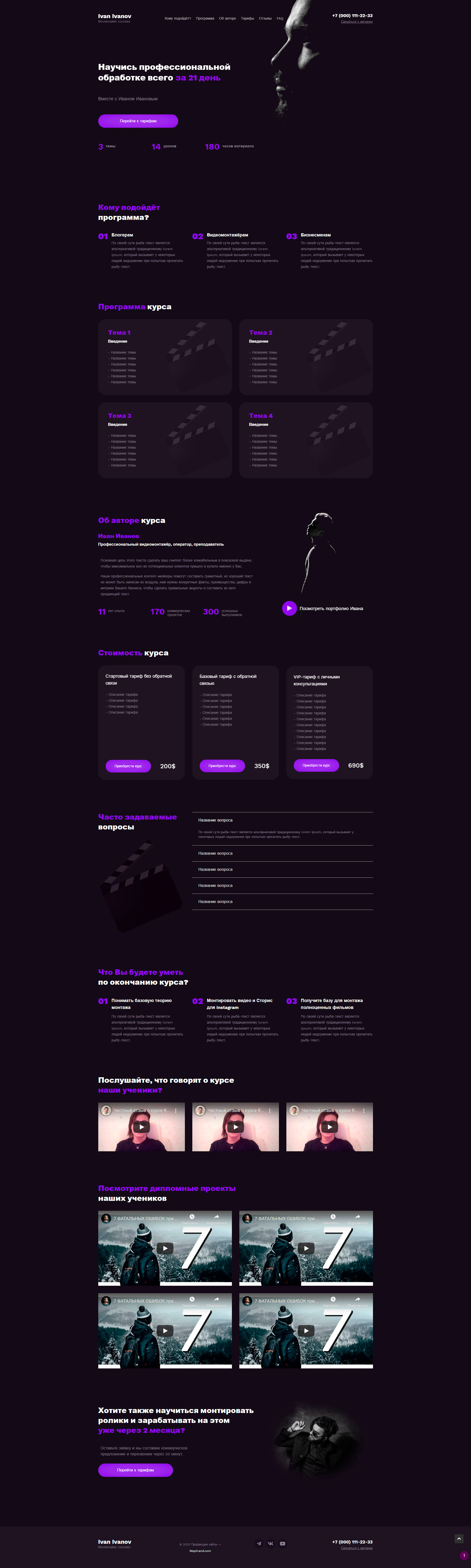Закажите готовый продающий сайт лендинг #1467204 в Стерлитамаке за 1-3 дня «под ключ»: свёрстан, отрисован и готов к рекламе. Тематика шаблона «Для курса видеомонтажа».
