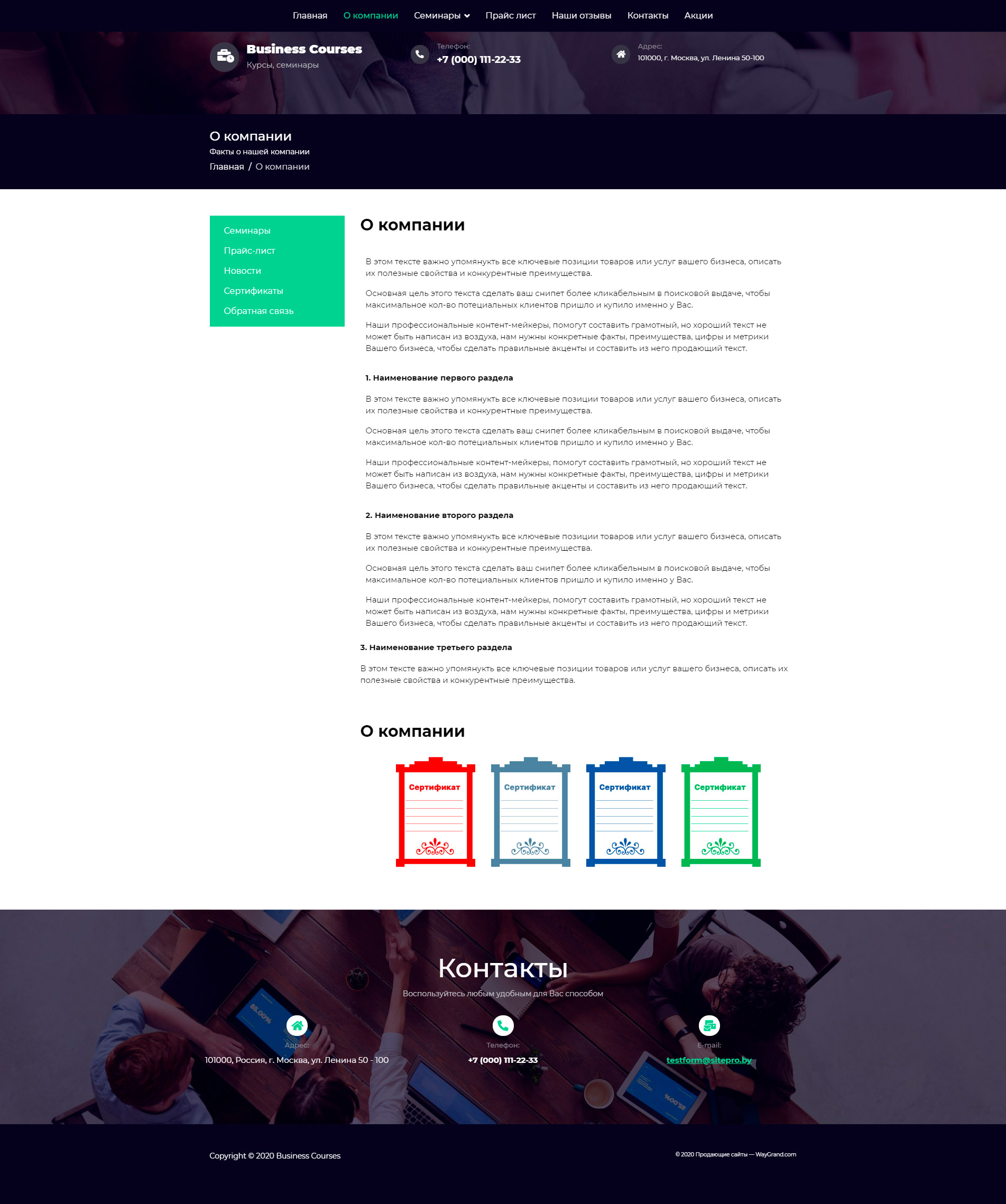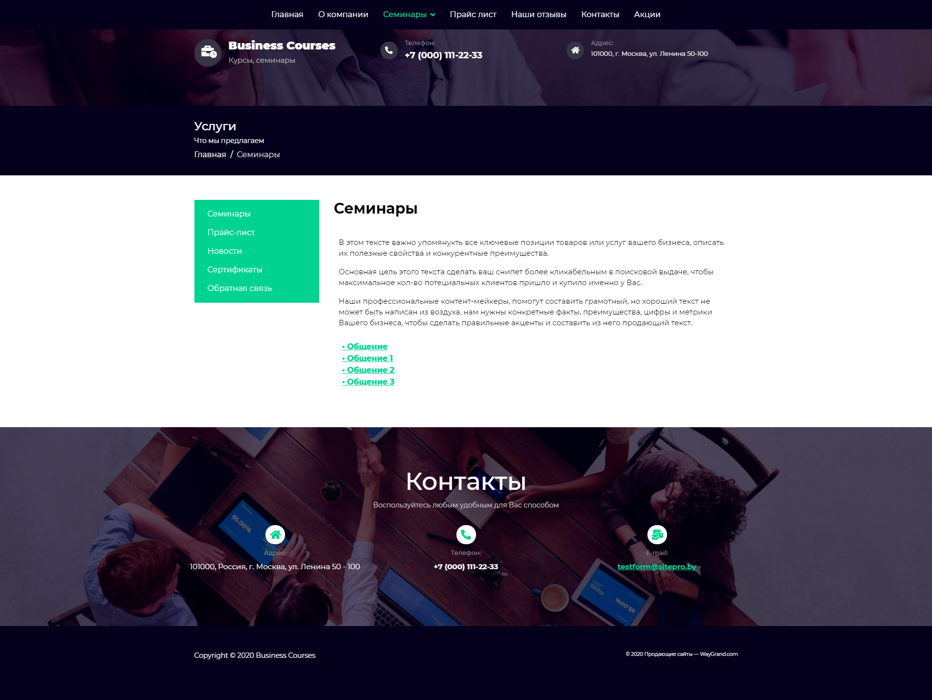 Закажите готовый продающий сайт визитка #1448303 в Стерлитамаке за 5-7 дня «под ключ»: свёрстан, отрисован и готов к рекламе. Тематика шаблона «Бизнес курсы и семинары».
