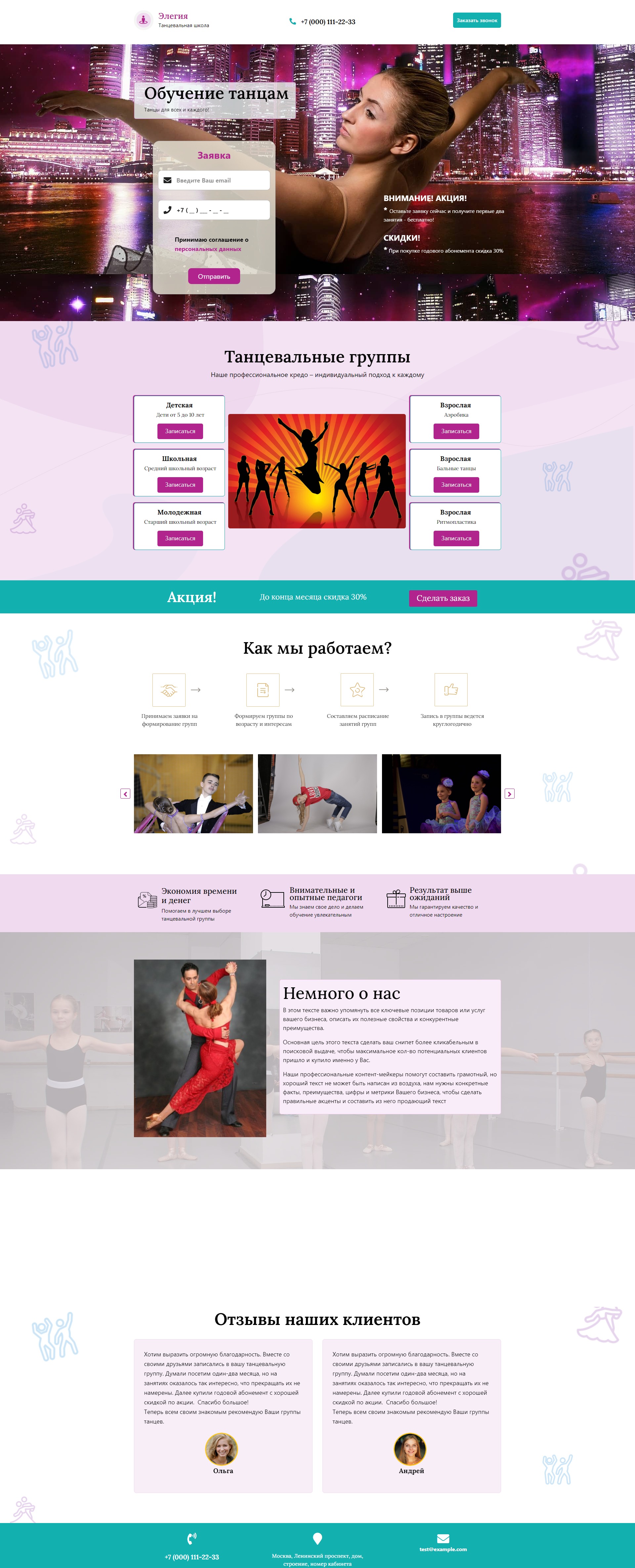 Закажите готовый продающий сайт лендинг #1923201 в Стерлитамаке за 1-3 дня «под ключ»: свёрстан, отрисован и готов к рекламе. Тематика шаблона «Обучение танцам».