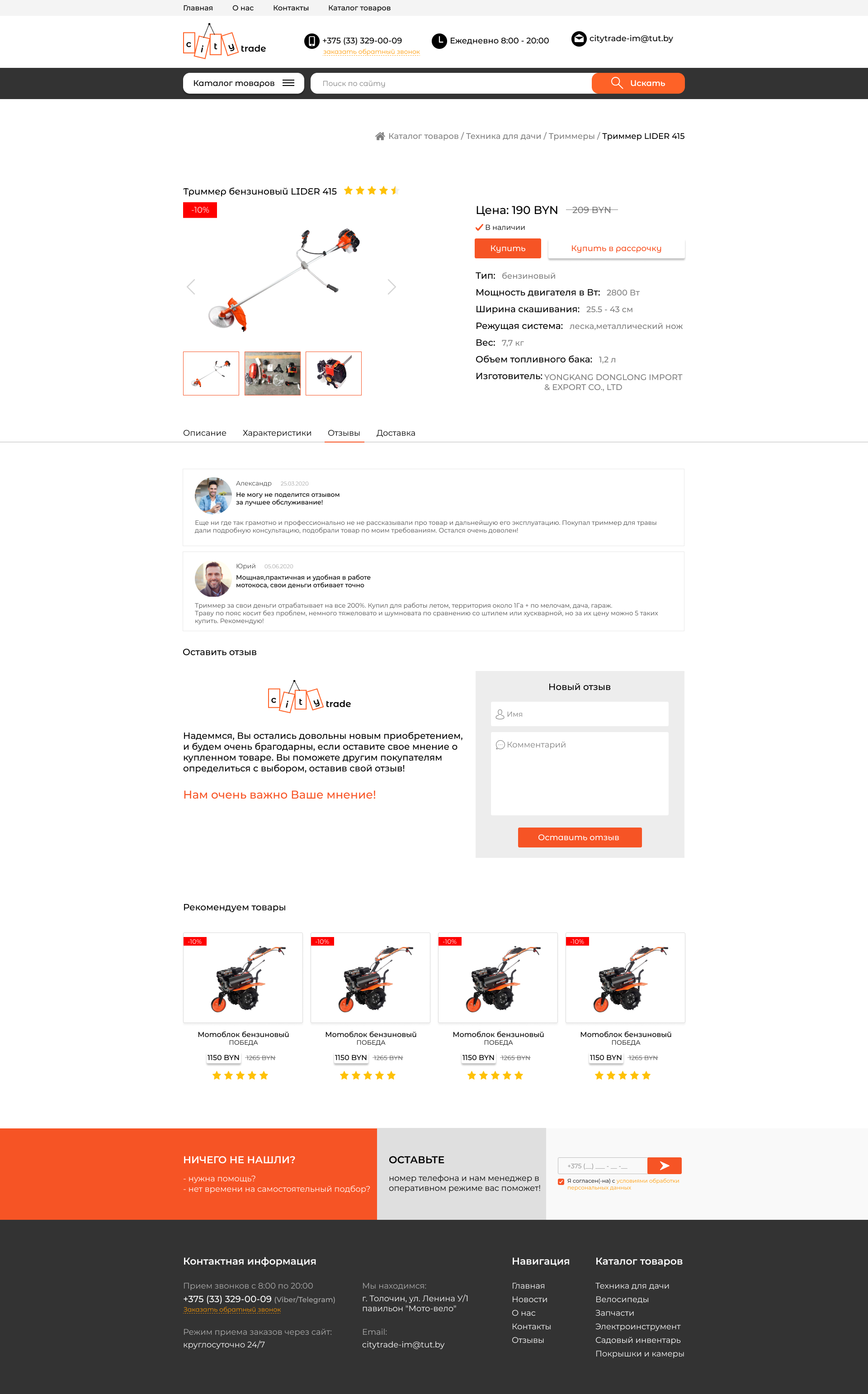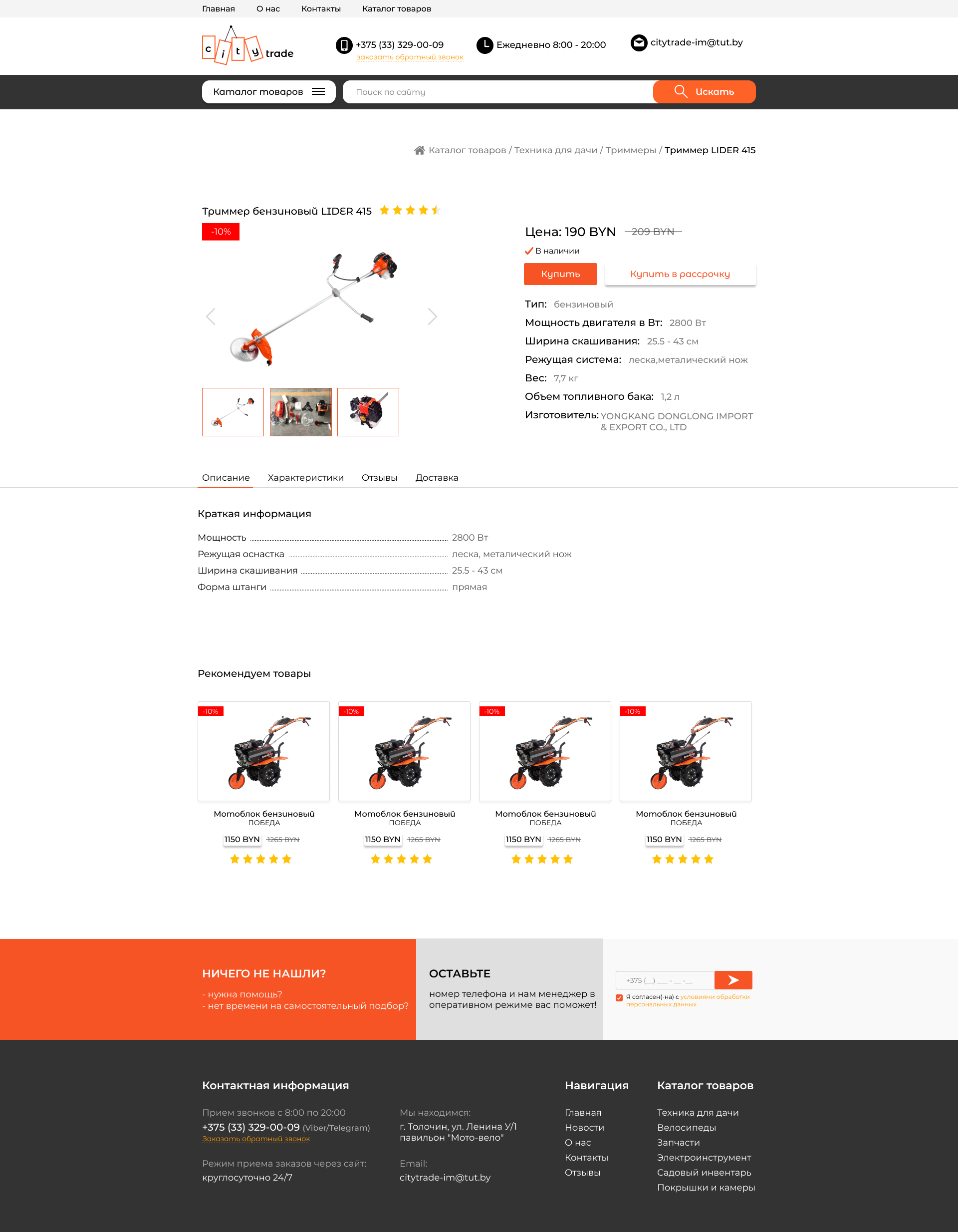 Закажите готовый продающий сайт визитка #281 в Стерлитамаке за 5-7 дня «под ключ»: свёрстан, отрисован и готов к рекламе. Тематика шаблона «Розничная продажа садовой техники, велосипедов».