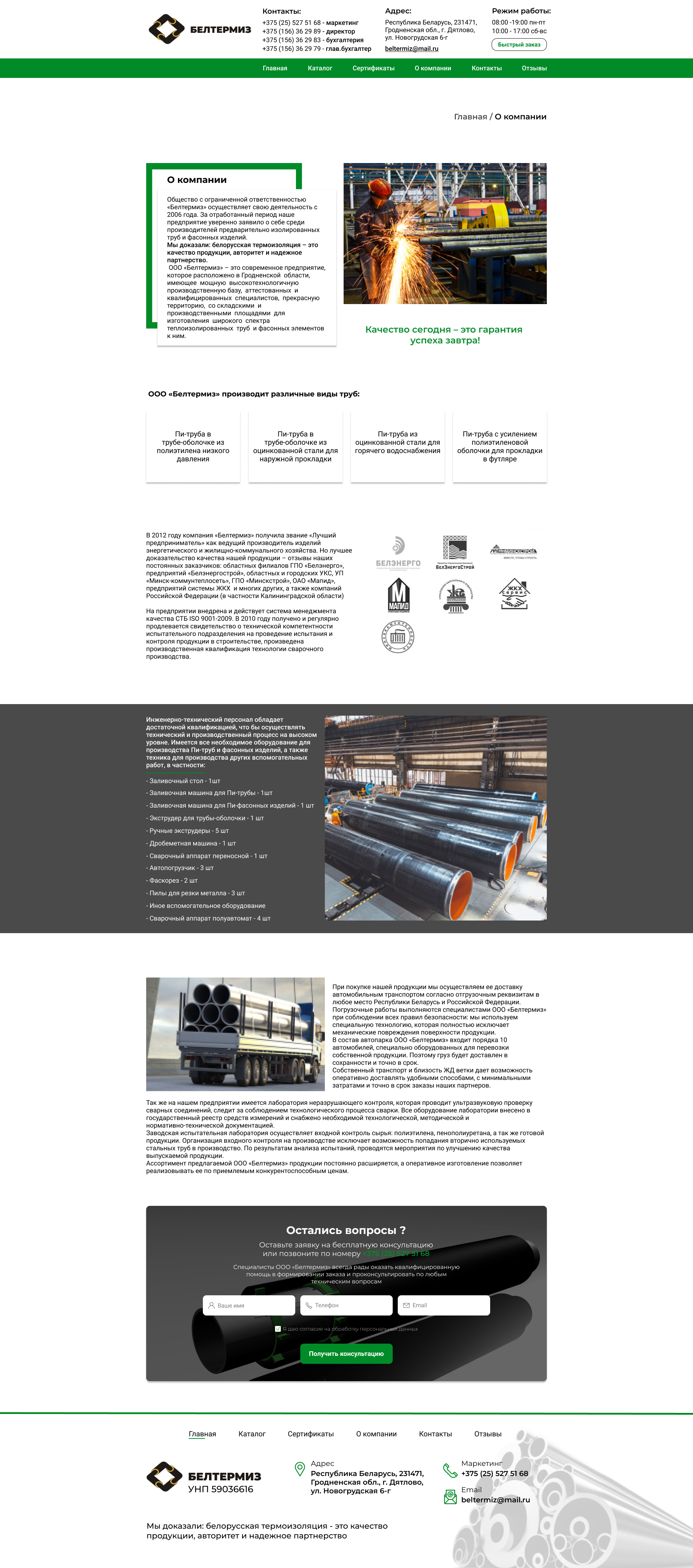 Закажите готовый продающий сайт визитка #141 в Стерлитамаке за 5-7 дня «под ключ»: свёрстан, отрисован и готов к рекламе. Тематика шаблона «Производство ПИ-труб».