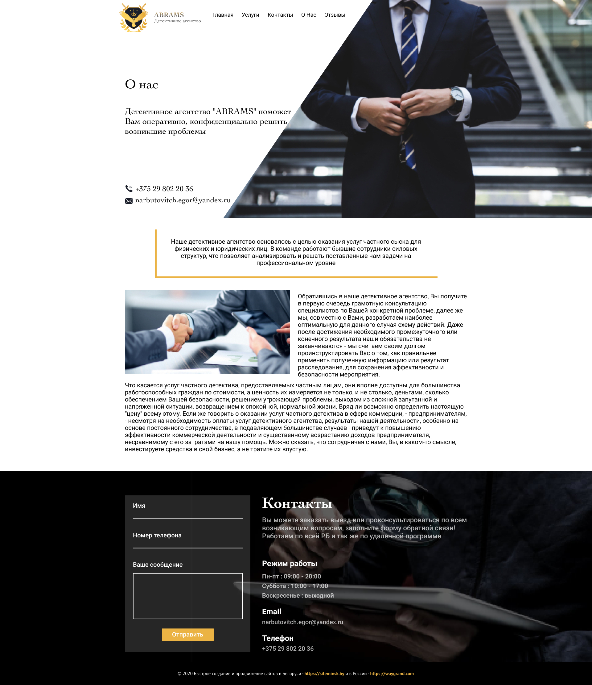 Закажите готовый продающий сайт визитка #239 в Стерлитамаке за 5-7 дня «под ключ»: свёрстан, отрисован и готов к рекламе. Тематика шаблона «Частное детективное агентство».
